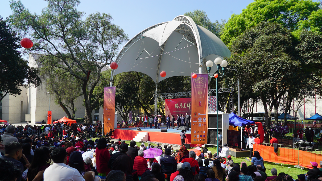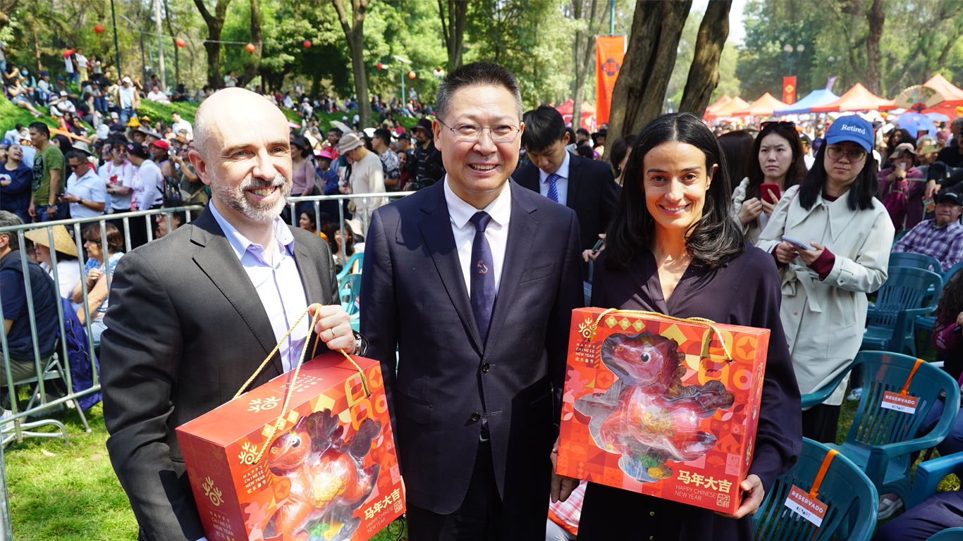 2026年2月14日,由中国驻墨西哥使馆、墨西哥中国文化中心、墨西哥国家艺术中心、墨西哥华人华侨总会及跨大西洋武术协会联合举办的第五届新年文化节在墨西哥国家艺术中心隆重开幕。中国驻墨西哥大使陈道江、墨西哥文化部艺术节司司长帕罗米诺、墨西哥国家艺术中心主任胡拉多、文化节导演兼制片人里斯克出席活动并致辞。驻墨西哥使馆参赞杨川颖、北京市文化和旅游局副局长徐振涛、墨西哥中国文化中心主任李林、墨西哥华人华侨总会会长耶天慧等嘉宾出席活动。开幕式当天吸引五万余名观众现场参与,共同迎接中国农历丙午马年的到来。